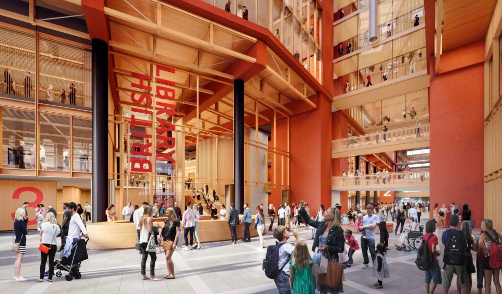 Set to be delivered by 2032, the extension project will create new public Library space with expanded galleries and business support facilities, alongside, globally significant capacity for commercial science, innovation, and knowledge industry across a 2.8 acre site. The Library and SMBL development will be a centre for commercial science, data and life sciences, supporting the advancement of science and innovation by forging new connections and facilitating new partnerships.